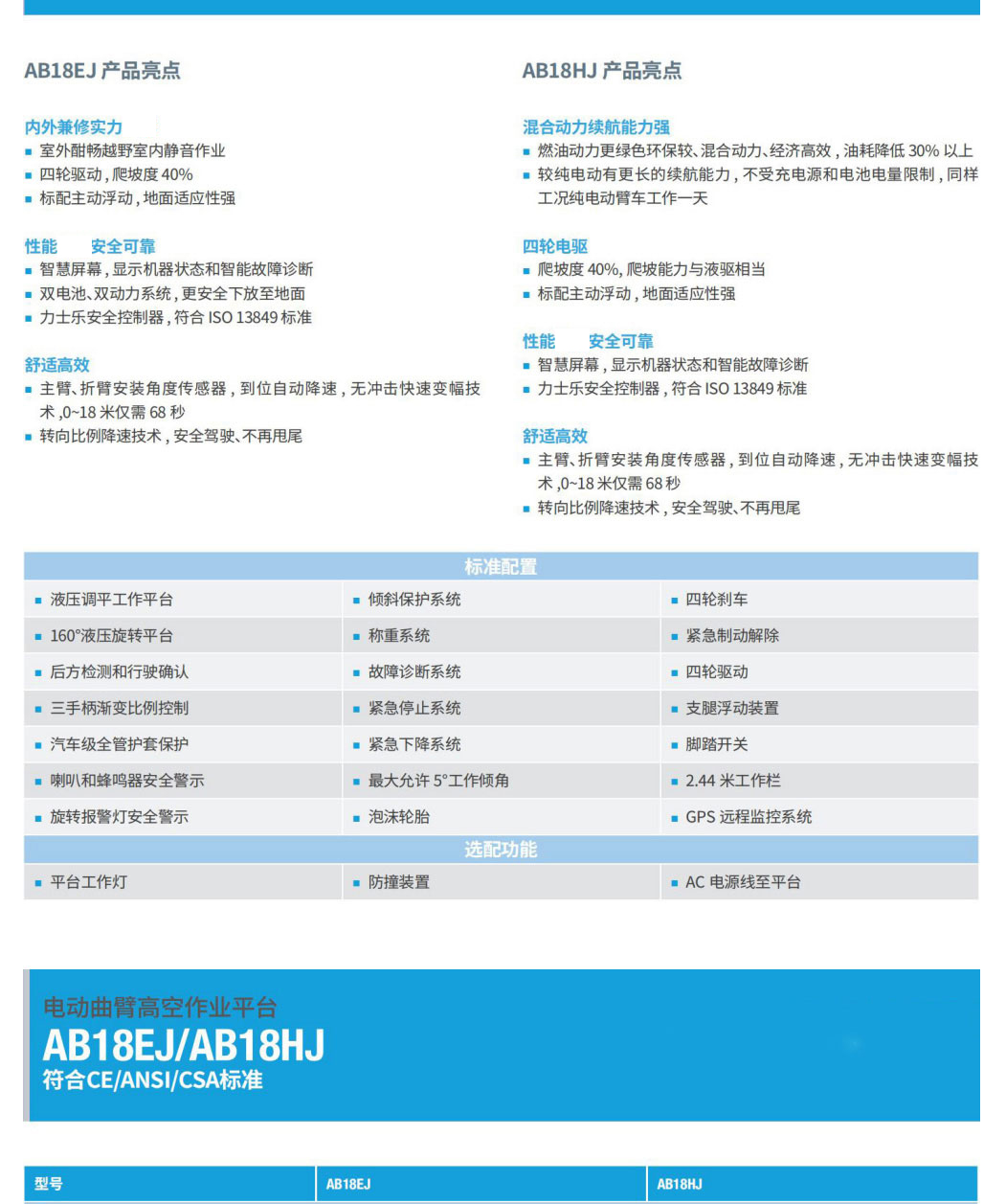 AB18EJ電動曲臂高空作業平臺